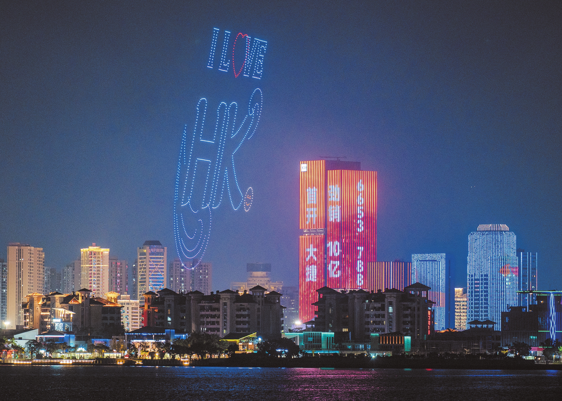 10月8日,2025“夸下海口”草坪音乐会,无人机表演秀排列出“I LOVE HK”图案。本版图片除署名外均由本报记者 石中华 摄