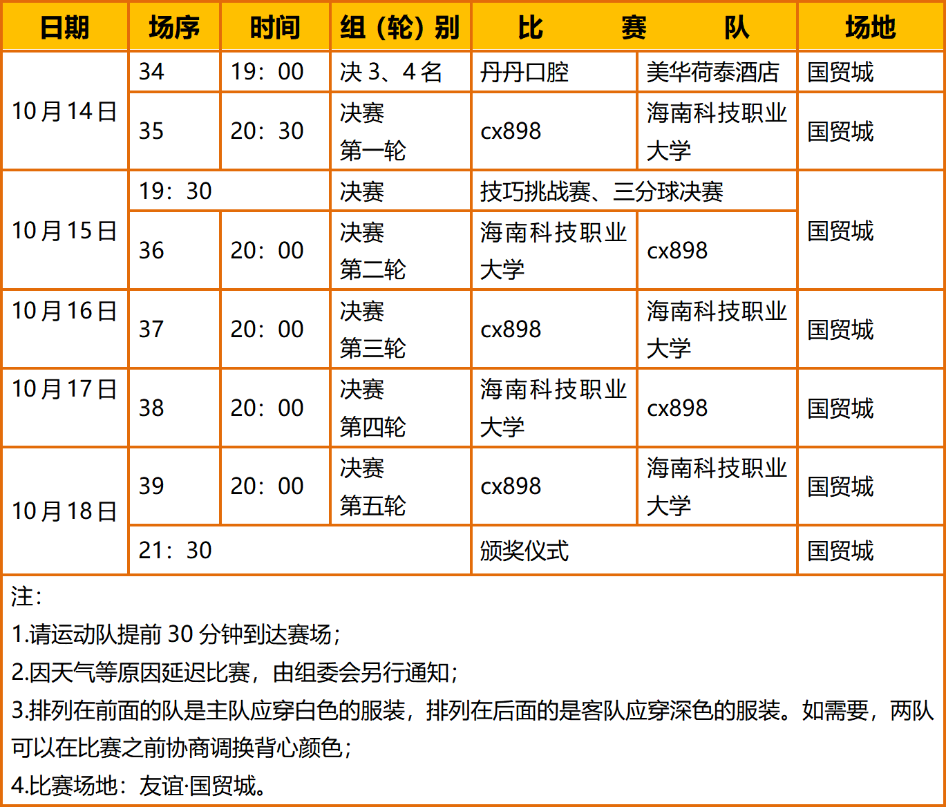 赛程表