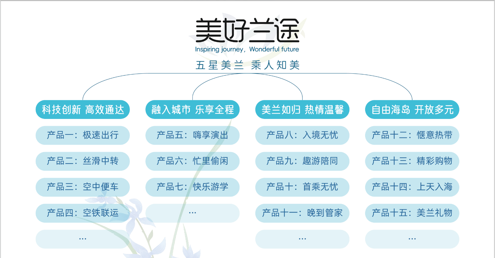 在服务品牌的愿景之下,构建“科技创新,高效通达”“融入城市,乐享全程”“美兰如归,热情温馨”“自由海岛,开放多元”四大体系产品矩阵,覆盖旅客出行全场景。