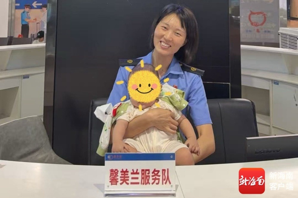 美兰站队员在帮旅客照顾孩子。图片由美兰站提供