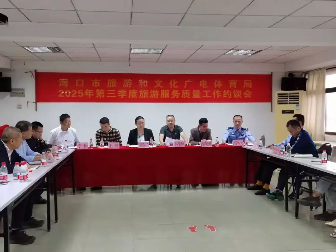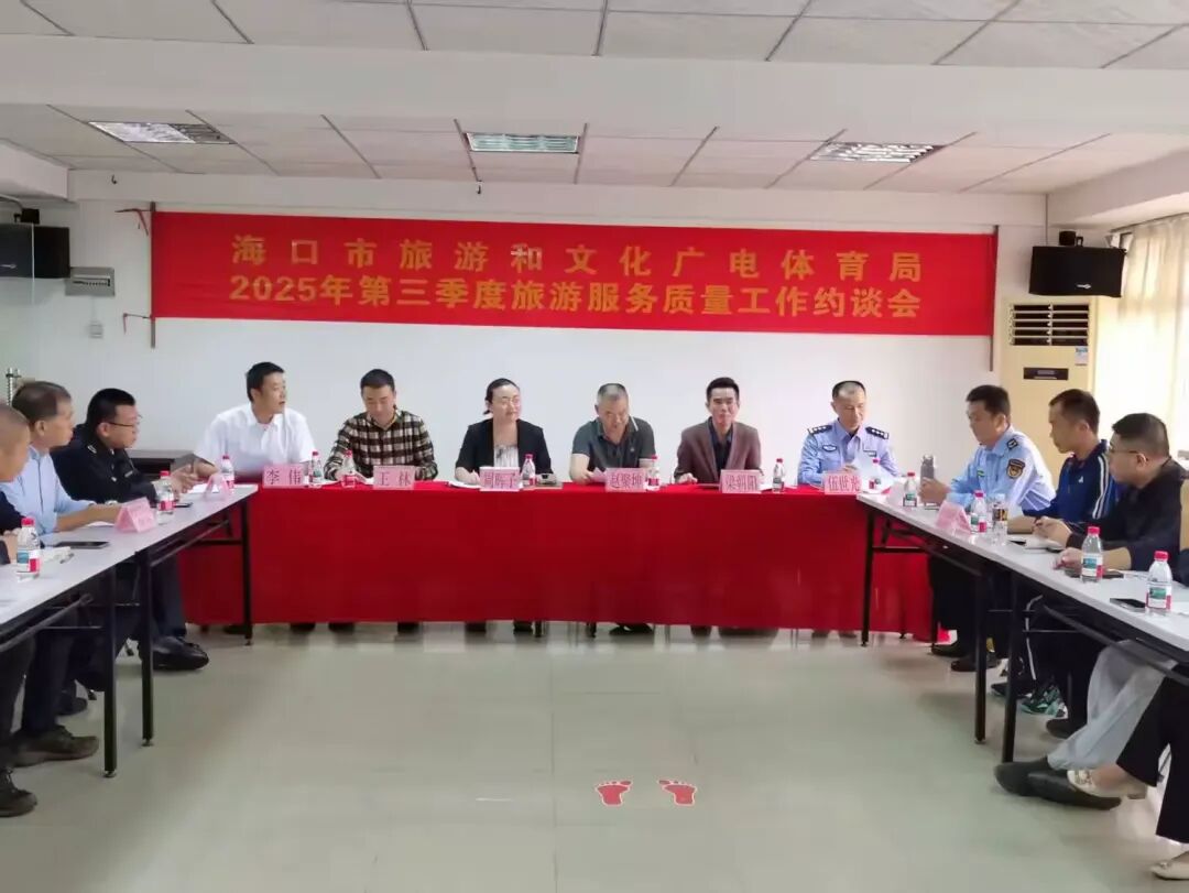 旅游服务质量是城市旅游形象的“金字招牌”,直接关系游客出行体验,更决定旅游产业长远发展根基。为精准破解2025年第三季度旅游服务领域突出问题、从严规范旅游市场秩序,10月29日下午,海口市旅游和文化广电体育局(以下简称“市旅游文体局”)在椰城旅游文化服务中心会议室,专题召开2025年第三季度旅游服务质量约谈会议。