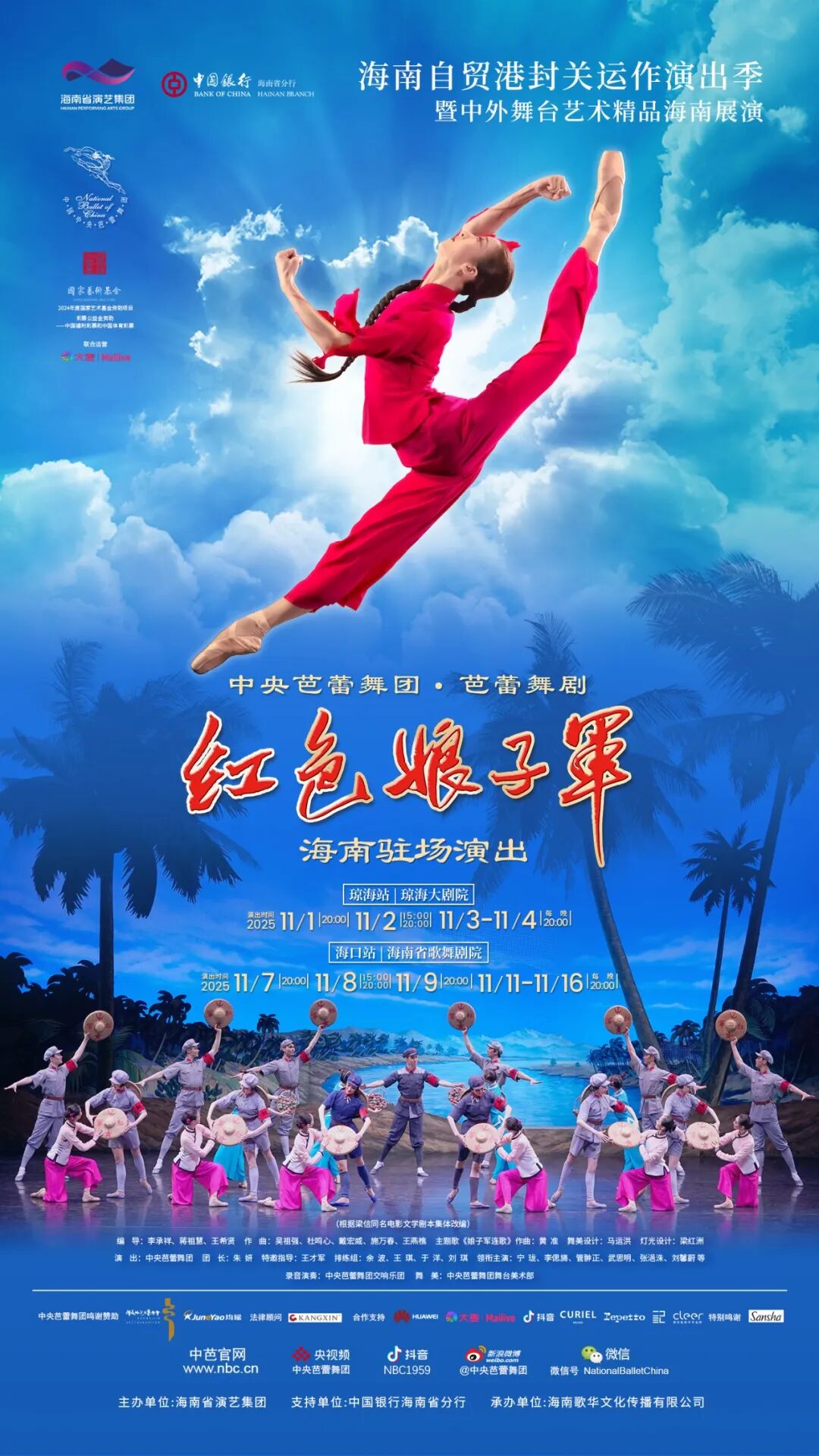 中央芭蕾舞团《红色娘子军》是以海南本土题材创作、享誉世界的芭蕾经典,今年已迎来第六代演员。该剧61年来在海内外演出超4000场,感染了一代又一代观众。11月即将上演的第三轮演出将作为年度收官之作,延续高艺术水准,以“倒踢紫金冠”等融合民族元素的芭蕾语汇,再现革命年代的壮烈与激情。