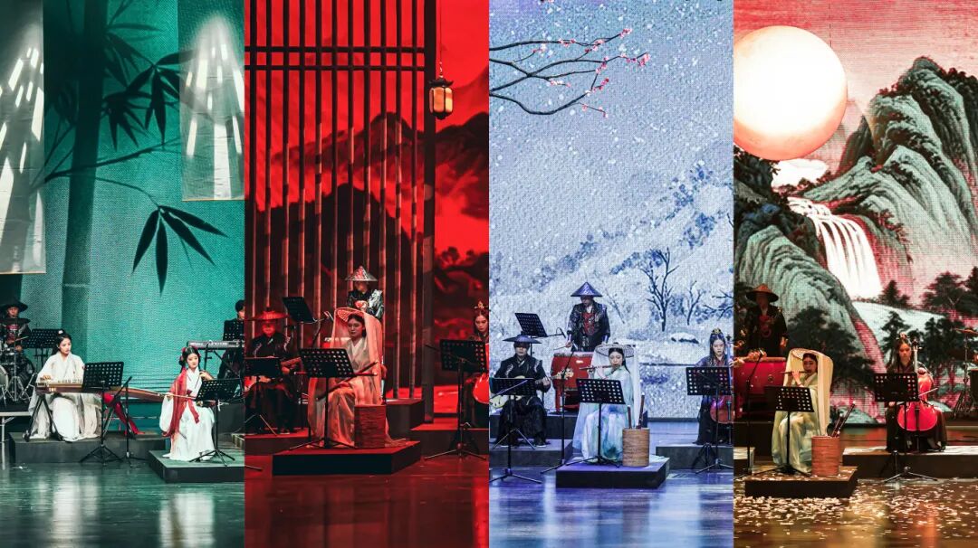 本场音乐会以二胡、笛箫、琵琶、唢呐等传统民乐为魂,融合了贝斯、键盘、架子鼓、大提琴等乐器进行全新编曲,打造独一无二的“民乐轻摇滚”国风舞台,让观众在熟悉旋律中沉浸式“入江湖”。