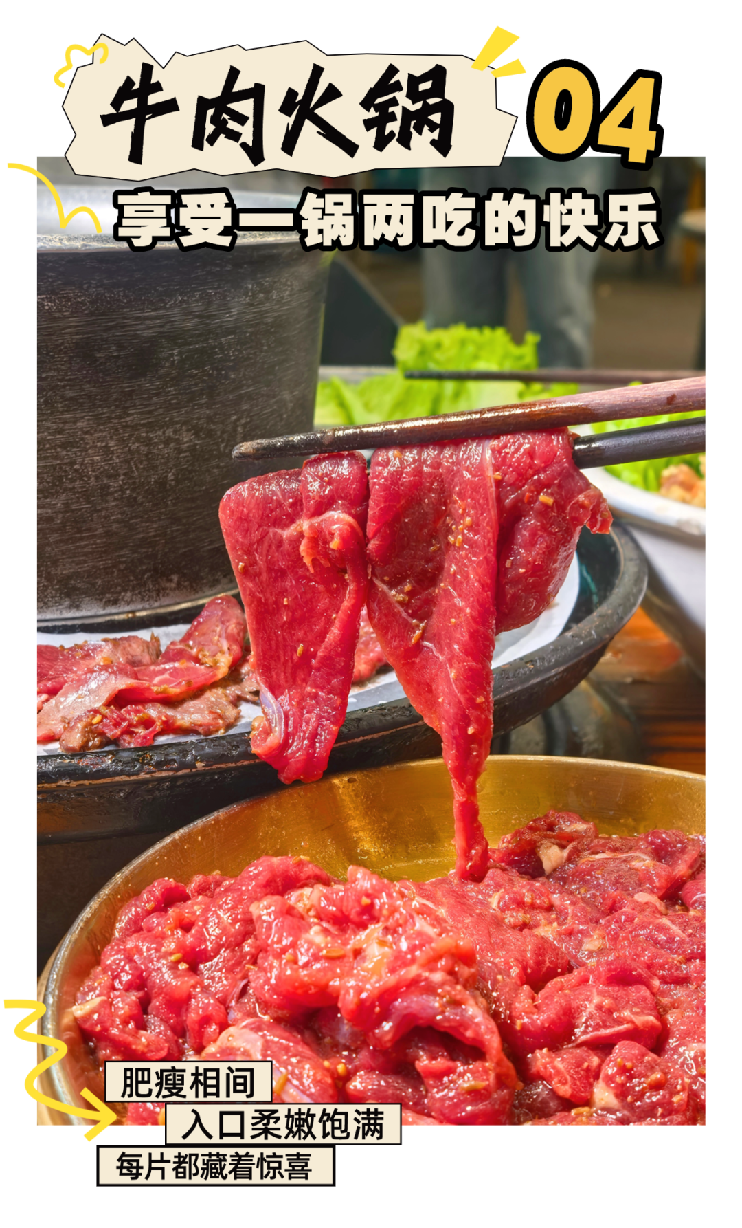 一定要涮入鲜美的海鲜、牛肉
