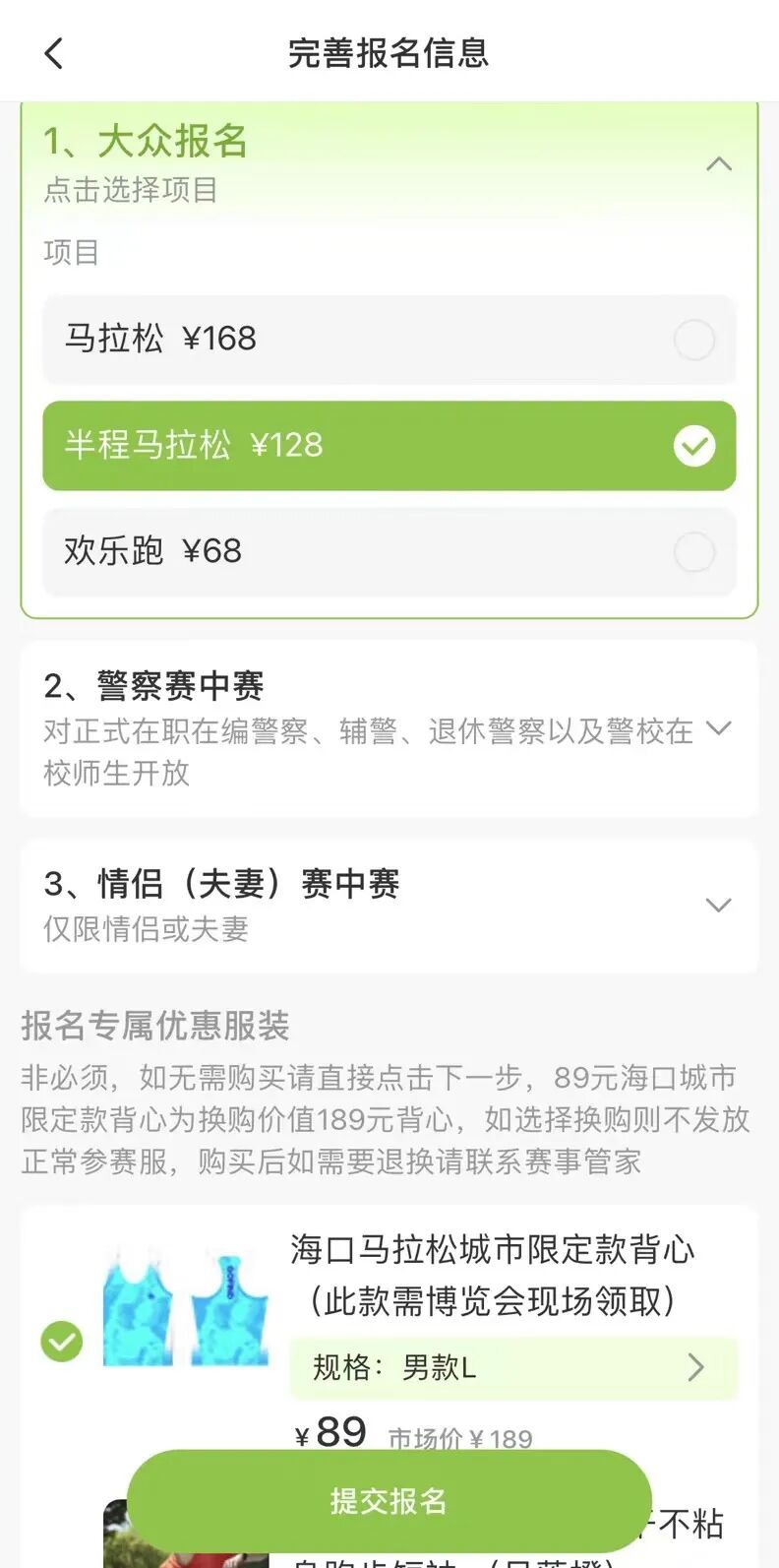 如有需要,可在报名2025海口马拉松任一项目时选择此款背心进行换购,确定换购后则不发放正常参赛服,此款限定背心需要在2025海口马拉松博览会现场领取。