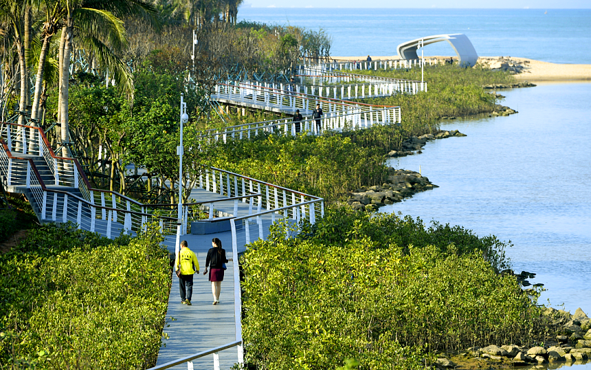 从海岸线向内陆延伸,五源河国家湿地公园展现出与海滩截然不同的生态之美。沿栈道漫步,沉浸于富含负氧离子的清新空气中,来一场净化身心的“森林浴”。