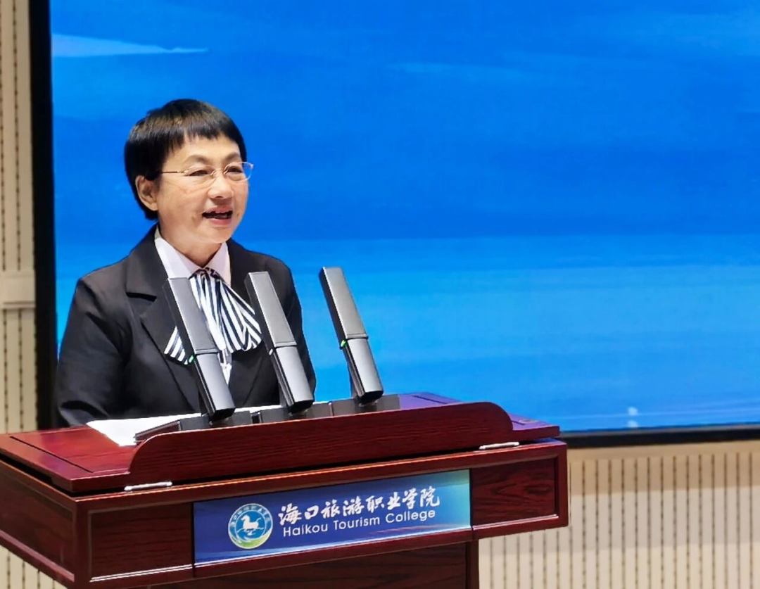 在成立大会上,海口旅游职业学院副院长杨英回顾了学校过去31年中职发展历程,以及加入高职院校后肩负的新使命。她代表学院郑重表态:将精准对接文旅产业需求,优化专业布局;构建“政校行企”共建共享机制,提升资源共享效益;发挥教学科研优势,深化人才培养与技术合作,为联合体发展与自贸港建设贡献职教力量。