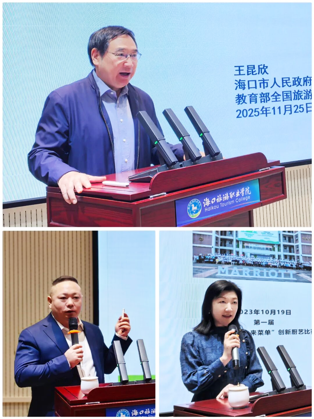 揭牌仪式结束后,海口市政府教育咨询专家王昆欣、海口酒店协会会长王德余、海口丽思卡尔顿酒店&海口万丽酒店总经理于淼分别以《产教融合:旅游职业教育的灵魂与价值》《自贸港背景下的海口酒店业人才新需求与职教新使命》和《海口旅游职业学院与万豪国际酒店集团共建现代酒店产业学院的成功经验》作了专题分享,为产教融合高质量发展提供实践思路。