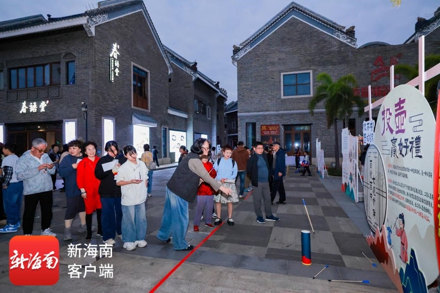 “这不仅仅是在买东西,更像是在阅读一本立体的海南风物志。”来自湖南的游客王先生感叹。非遗手作工坊里,孩子们在非遗传承人的指导下学习椰雕,一笔一刻十分专注,家长在一旁协助,笑声与赞叹声交织。打卡集章换“传承盲袋”的趣味互动,更让年轻人乐此不疲,在“寻宝”游戏中悄然完成了对非遗知识的吸纳。