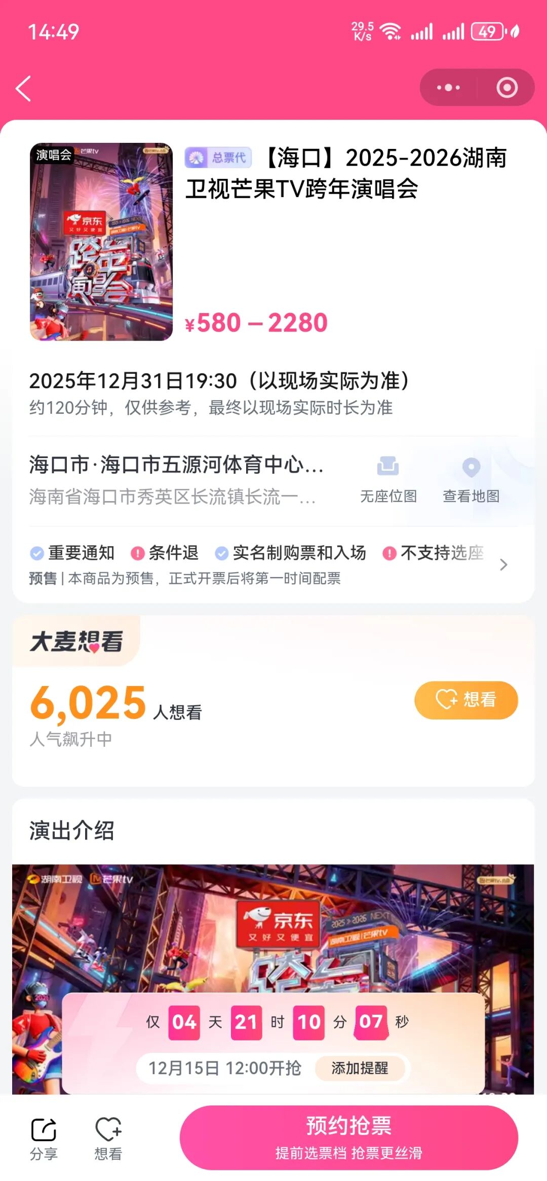 2025-2026湖南卫视芒果TV跨年演唱会主视觉以一辆蓄势待发的时光列车为核心视觉符号,列车车头径直朝向璀璨的跨年舞台,仿佛正鸣响汽笛,即将载着万千观众的新年期许,冲破旧年的尾声,驶向2026年的全新篇章。列车车身及整体风格巧妙融合演唱会主题及芒果品牌专属元素,将城市风情、时代印记与跨年的炽热氛围完美串联,既直观呼应了“炽热出发”的核心主题,也提前为大众勾勒出一场兼具科技感与仪式感的跨年狂欢盛宴。