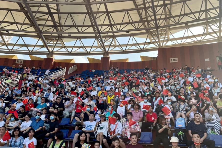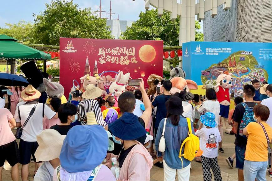 “我和我的祖国,一刻也不能分割;无论我走到哪里,都流出一首赞歌。”园区广播里不时传出《我和我的祖国》嘹亮的歌声,引得不少正在排队入园的游客情不自禁地随声哼唱,大家用喜悦的心情歌唱祖国,向祖国母亲送上了最美好的祝福。