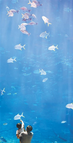 游客在三亚·亚特兰蒂斯水族馆游玩。 本报记者 封烁 摄