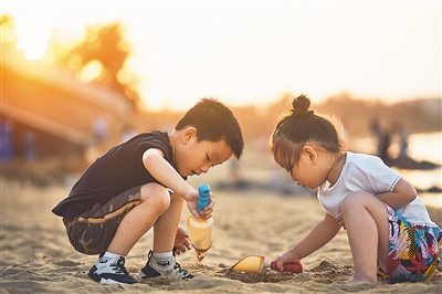 小游客在海口西秀海滩玩耍。本报记者 封烁 摄