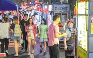 ◀10月5日晚,在海大南门夜市,不少市民游客前来品尝美食。 本报记者 苏弼坤 摄