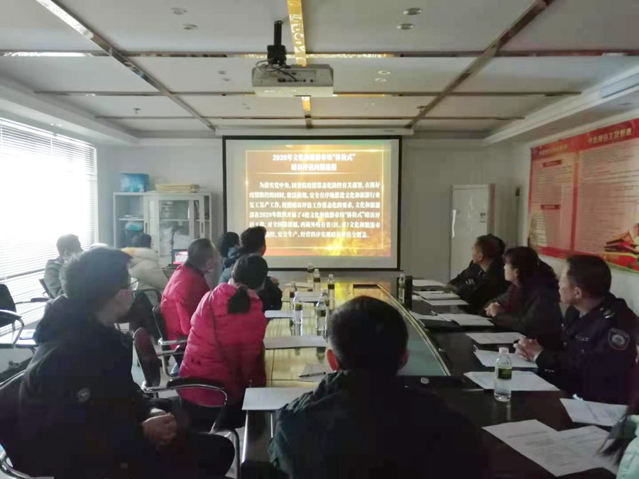2021年1月12日下午,市旅文局、市综合行政执法局在市综合执法局文化执法支队会议室联合召开海口市文化市场新冠疫情防控暨寒假文化市场专项整治动员会。市旅文局、市综合执法局文化执法支队、全市20家连锁网吧、娱乐场所、电影院等主要负责人参加会议,会议部署节前文化市场疫情防控等工作。