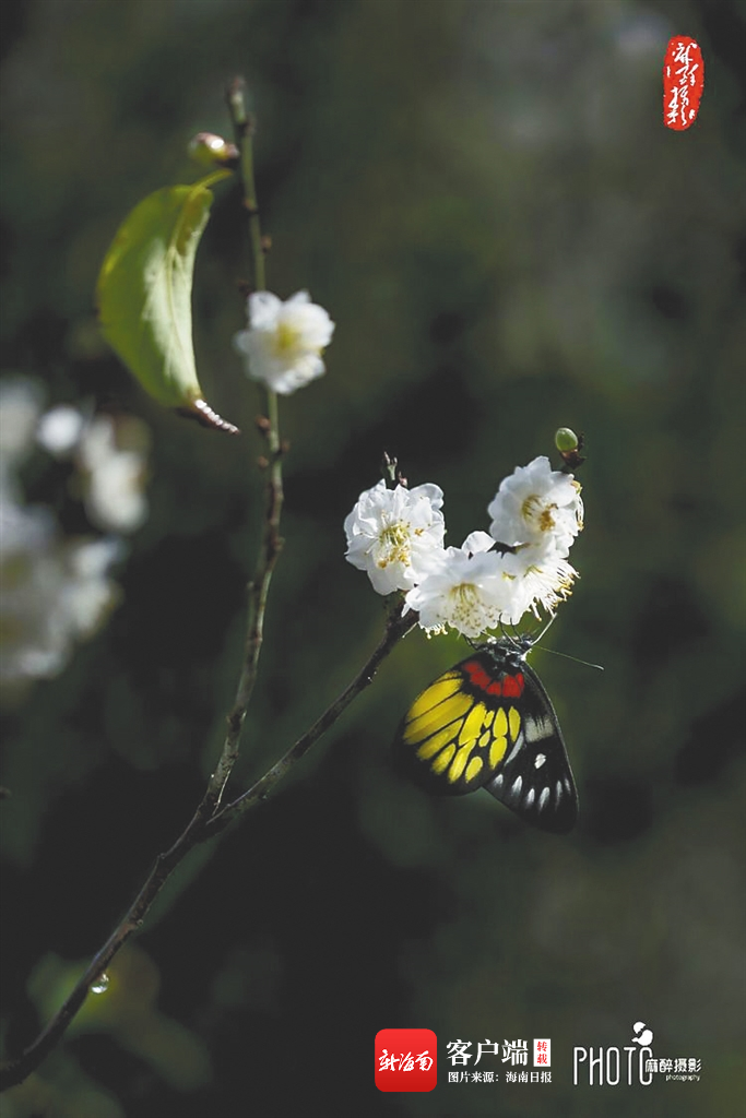 琼台书院盛放的梅花与彩蝶。(资料图)