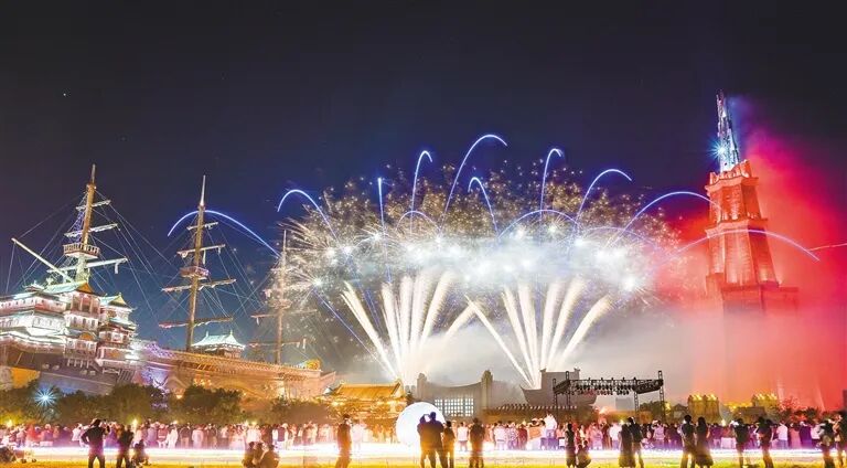 海南长影奇幻乐园推出DJ电音、舞蹈、烟花与无人机表演迎新年。海南日报全媒体记者 陈元才 摄