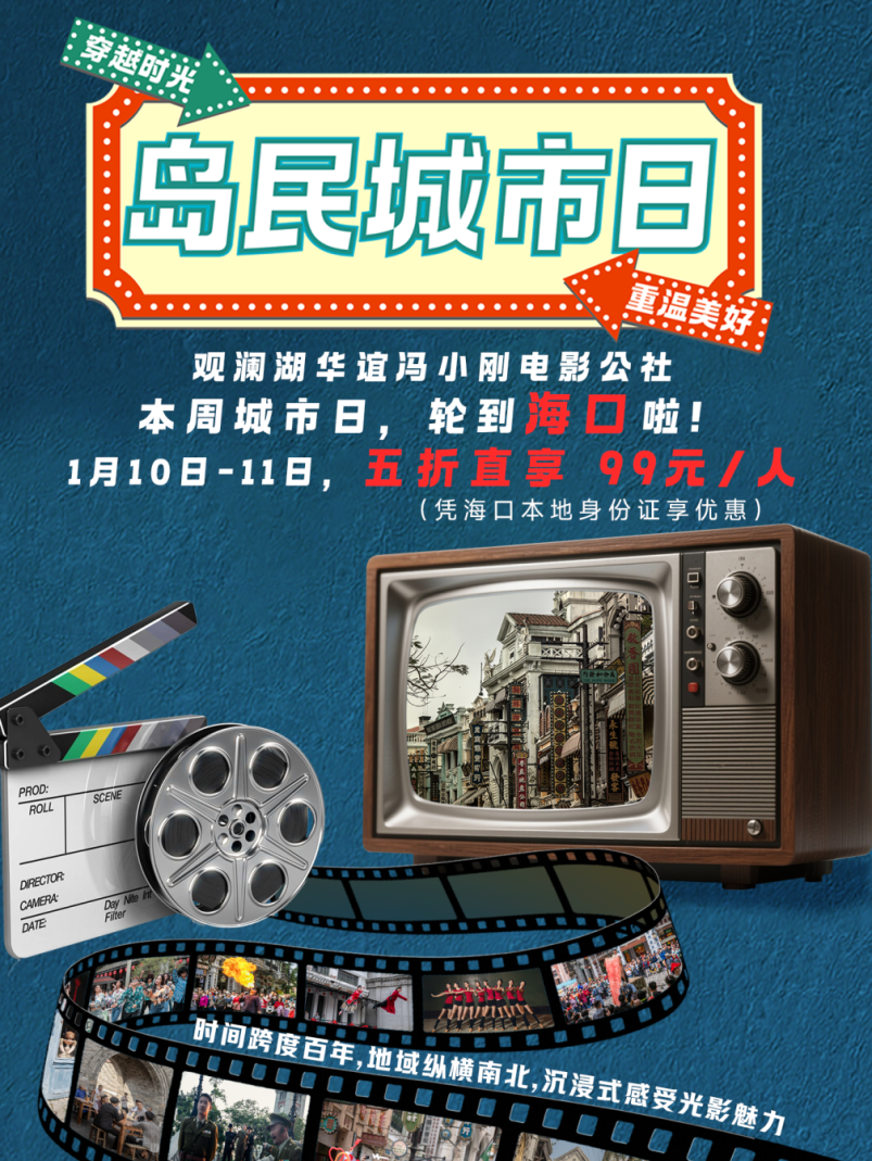 2026年观澜湖电影公社“城市日” ,每个周末,都会有一个海南市县的市民朋友享受专属5折福利,全省轮动。在“海口市民日”之后,将迎来 “文昌市民日”,具体活动安排及后续市县日期,请持续关注 “观澜湖电影公社”官方服务号,获取最新资讯!
