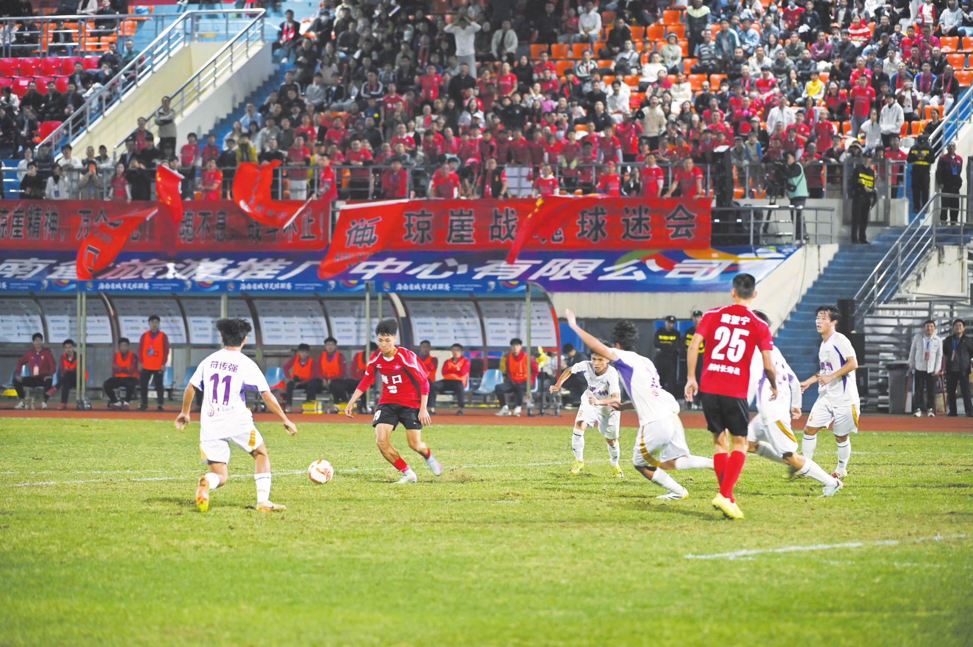 当前,“启航自贸港”第一届海南省城市足球联赛激战正酣。1月2日晚,海口队在主场以6:1大胜文昌队,实现联赛四连胜。