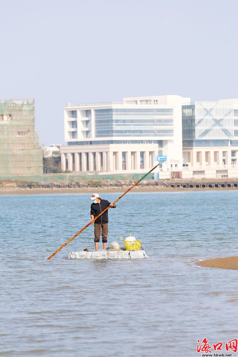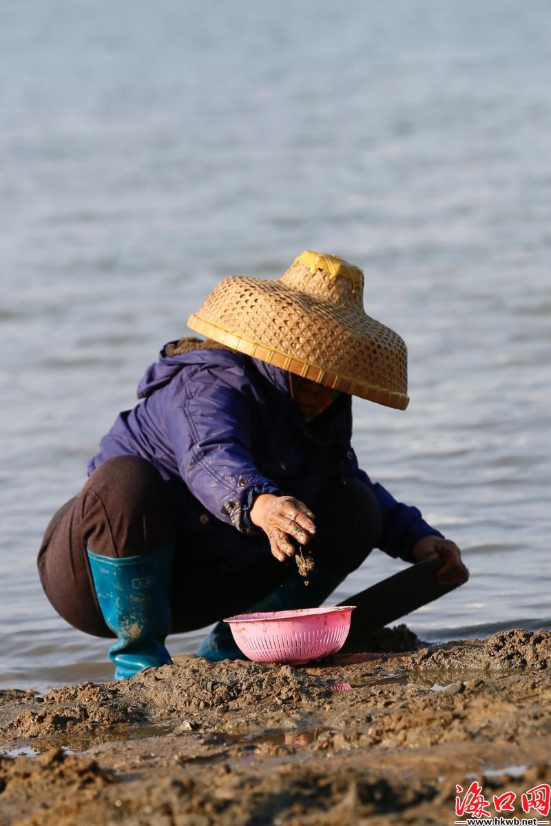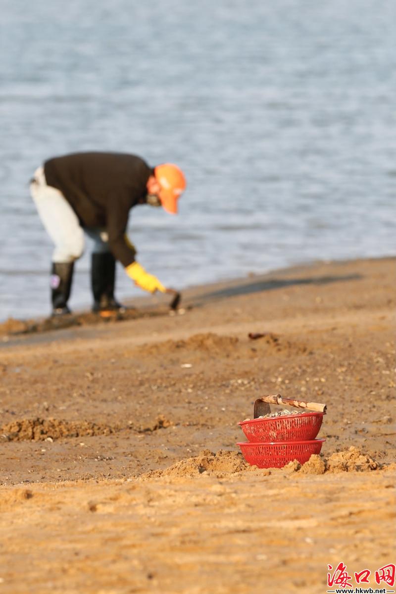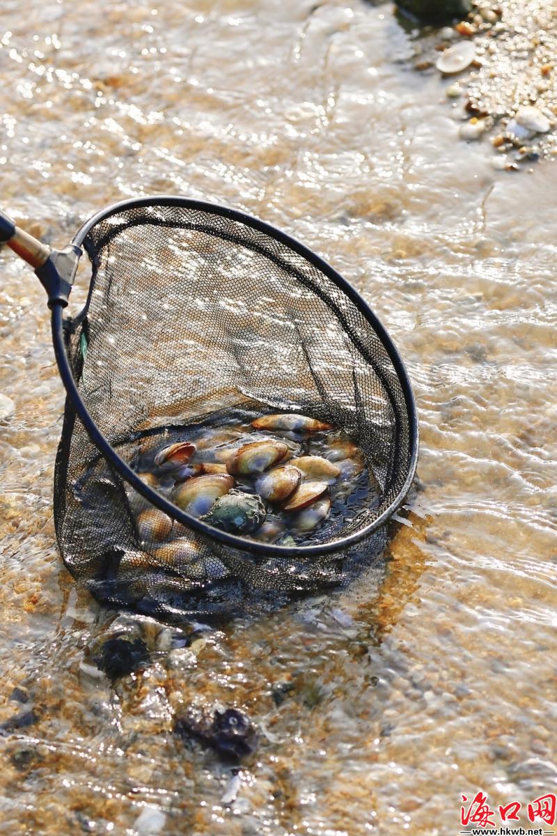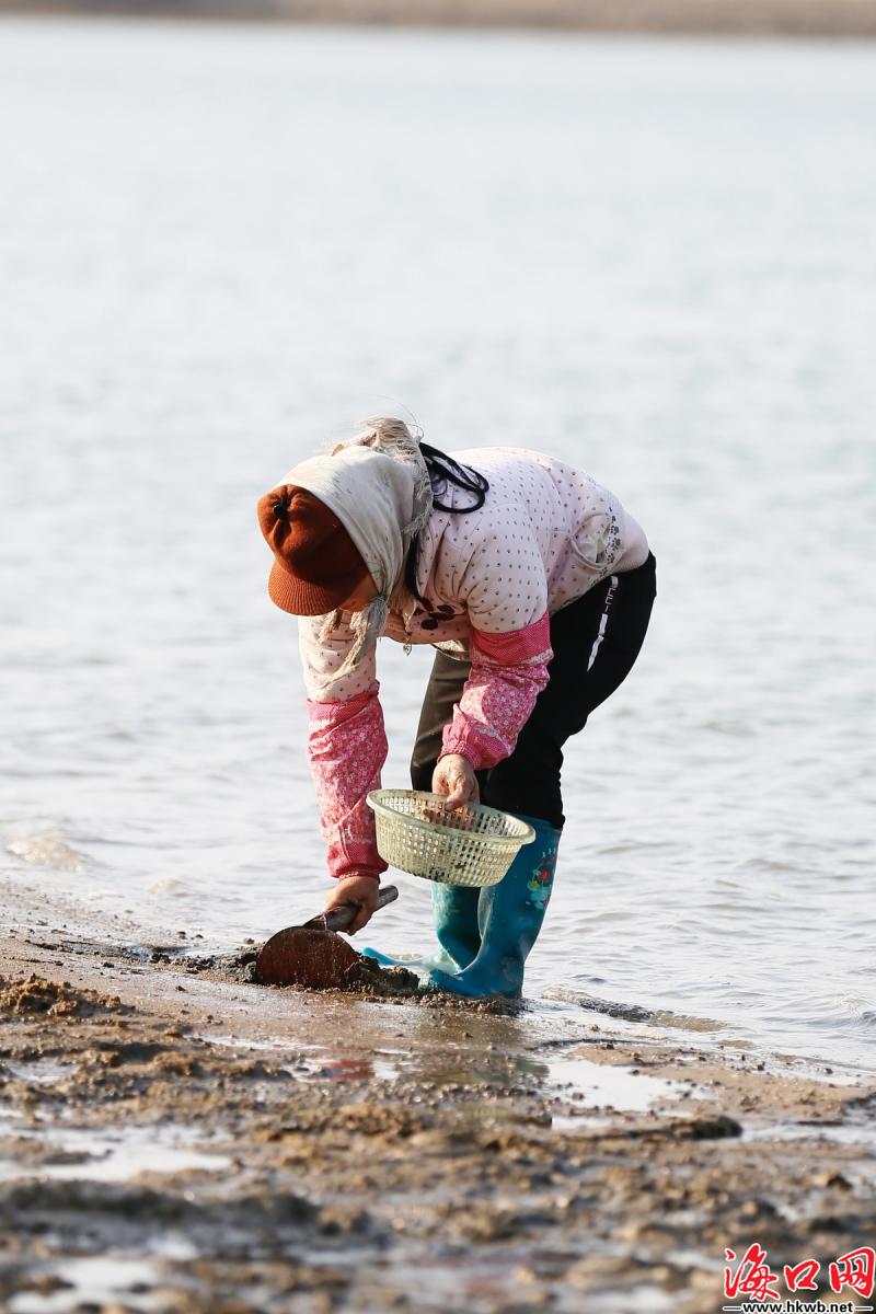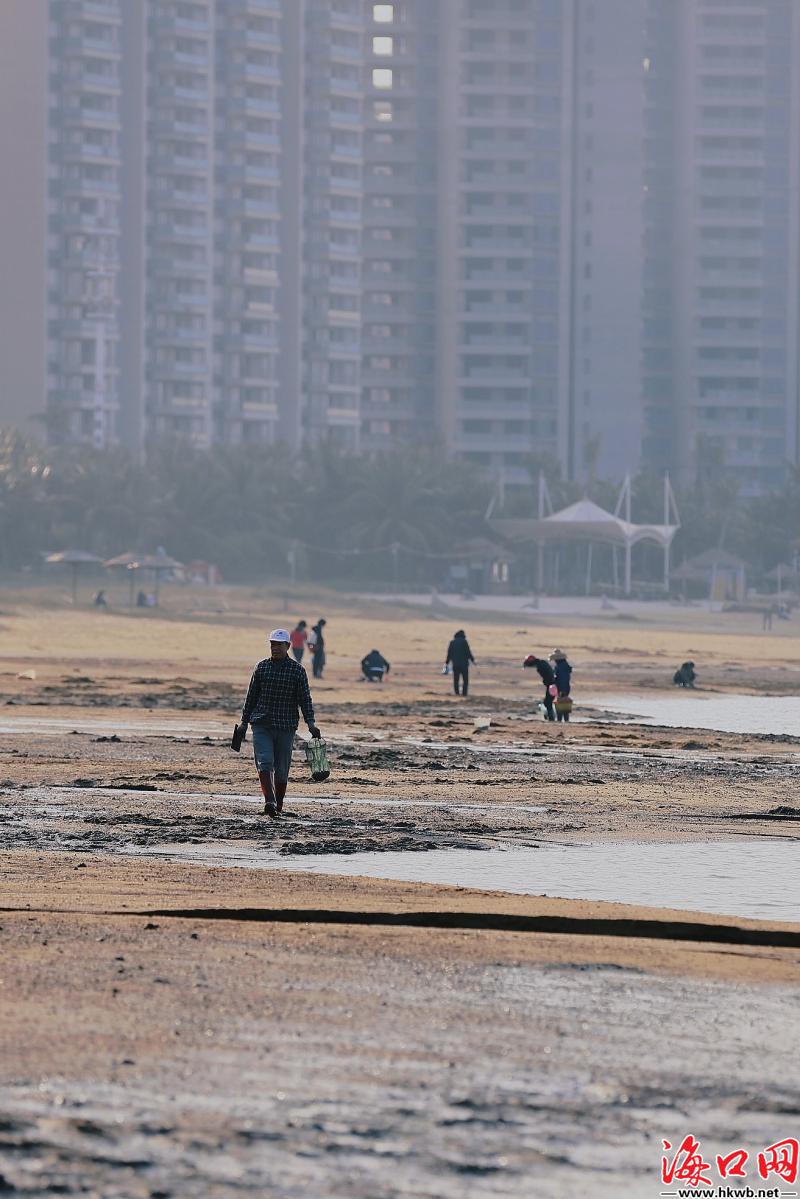 冬日暖阳下,海口市民赶海欢