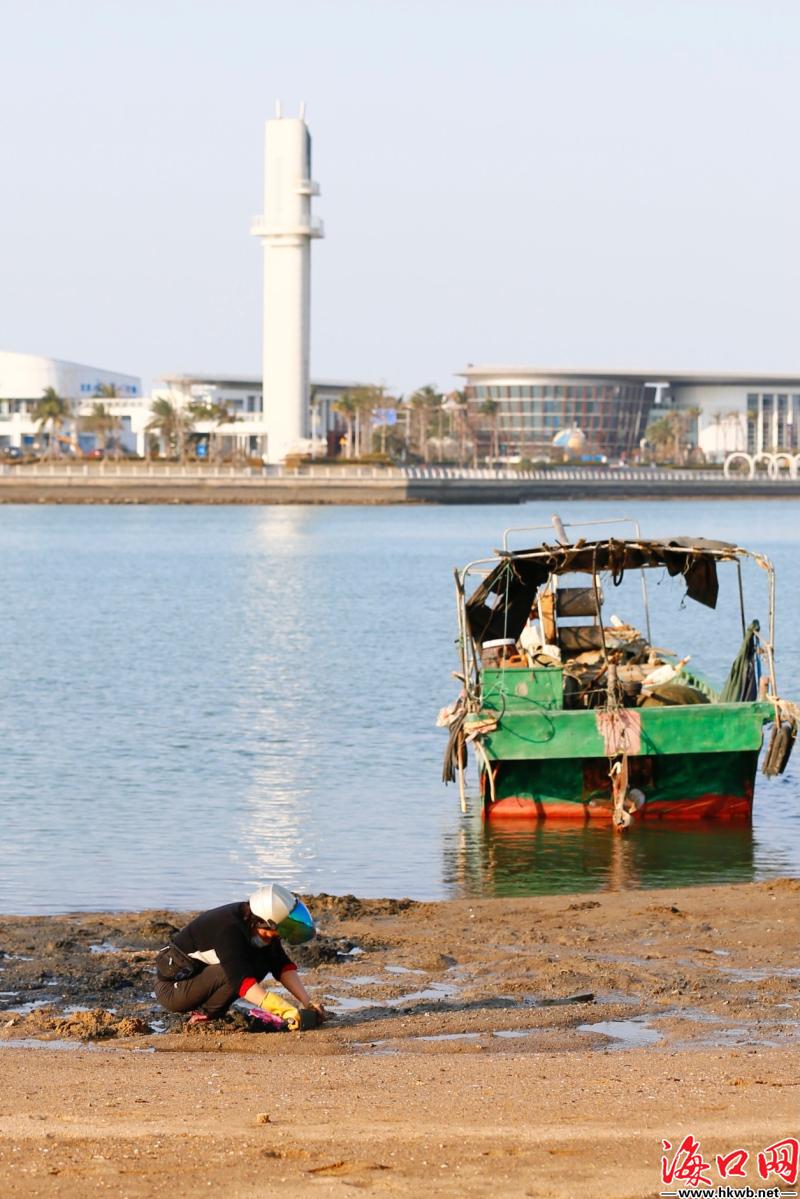 海口网1月14日消息(记者邵阳 摄影报道)近日,久违的阳光“上线”,海口天气开始回温,不少市民游客来到新埠岛一海滩,趁着好天气,赶海拾趣。