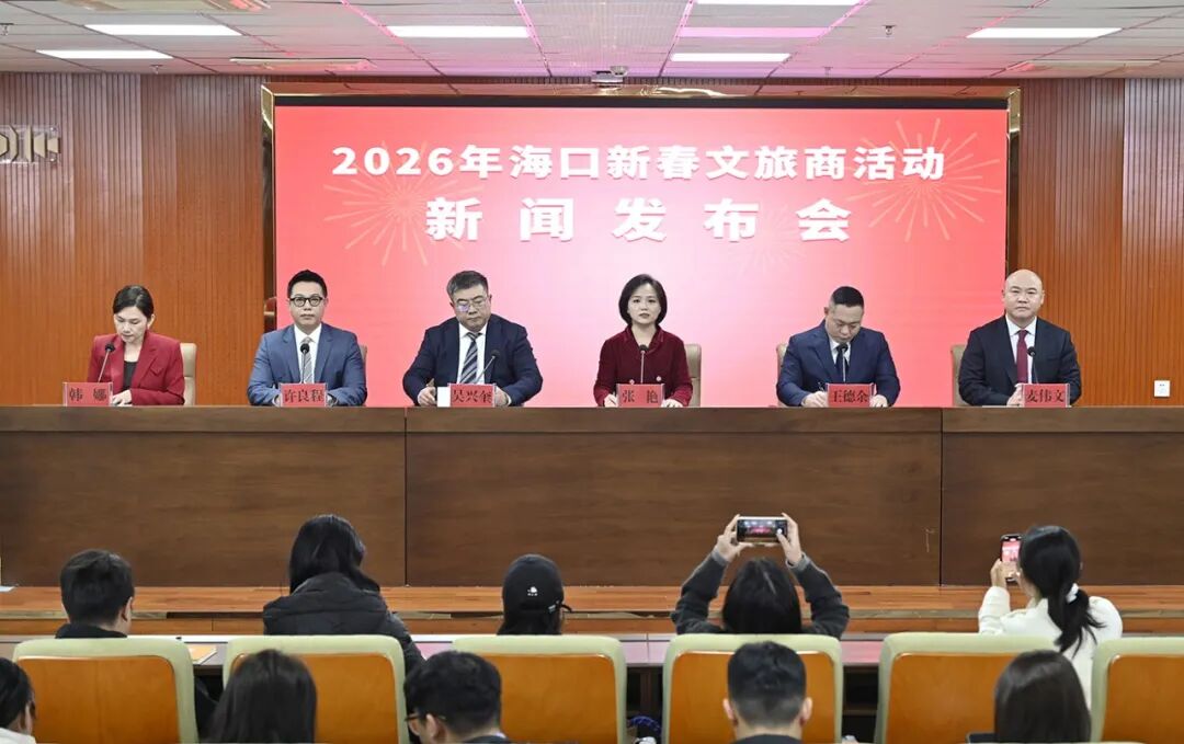 2026年1月23日,海口市召开2026年新春文旅商活动新闻发布会,全面介绍春节假期旅游、文化、体育及消费促进系列活动。海口市旅游和文化广电体育局党组成员、副局长张艳,海口市商务局党组成员、副局长吴兴奎,海口酒店协会会长王德余,海口市旅游景区协会会长许良程,海口市旅行社协会会长麦伟文出席发布会,详细解读活动亮点并回答记者提问。