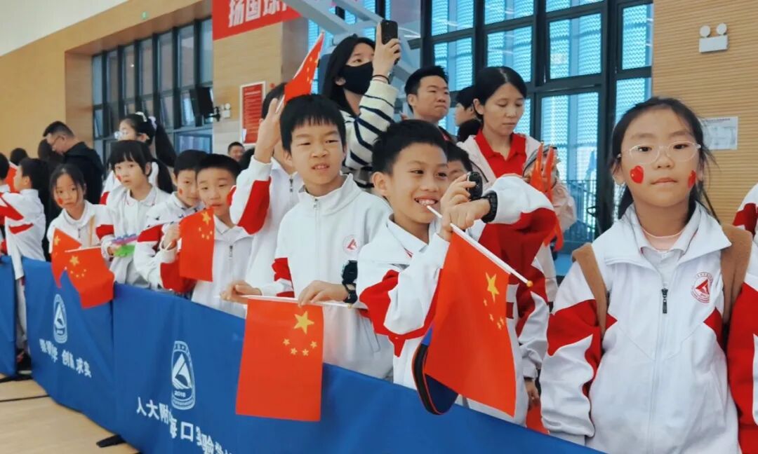 在人大附中海口实验学校,王楚钦等国手与师生们进行趣味互动和轻松愉快的友谊赛,让冠军与乒乓爱好者零距离接触,生动演绎了“榜样就在身边”的感染力。