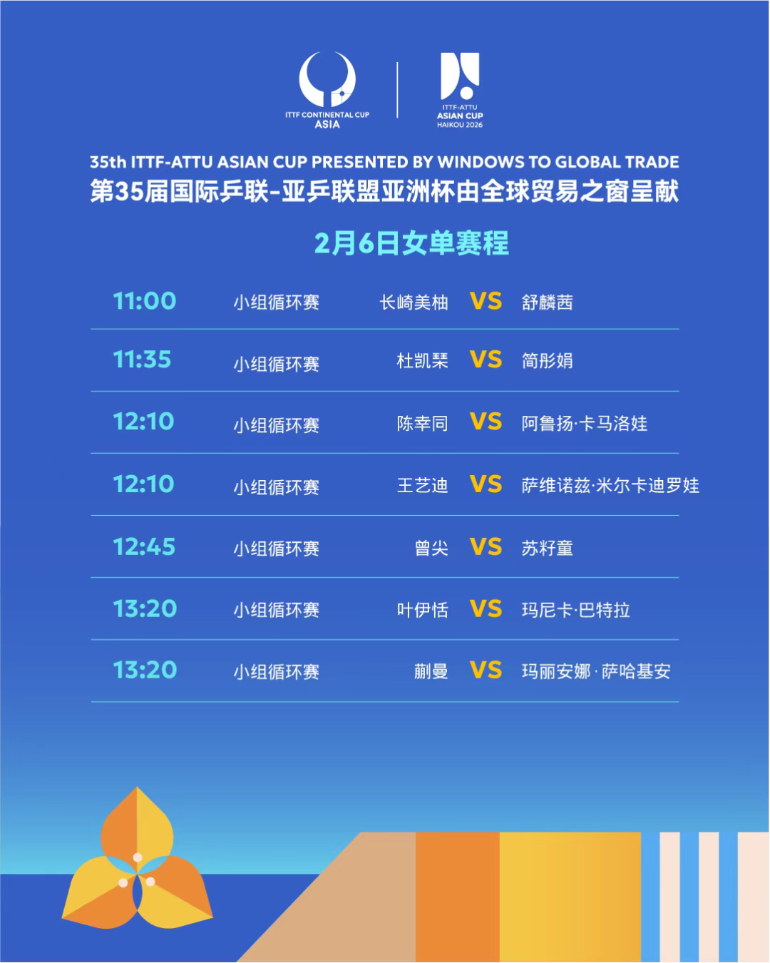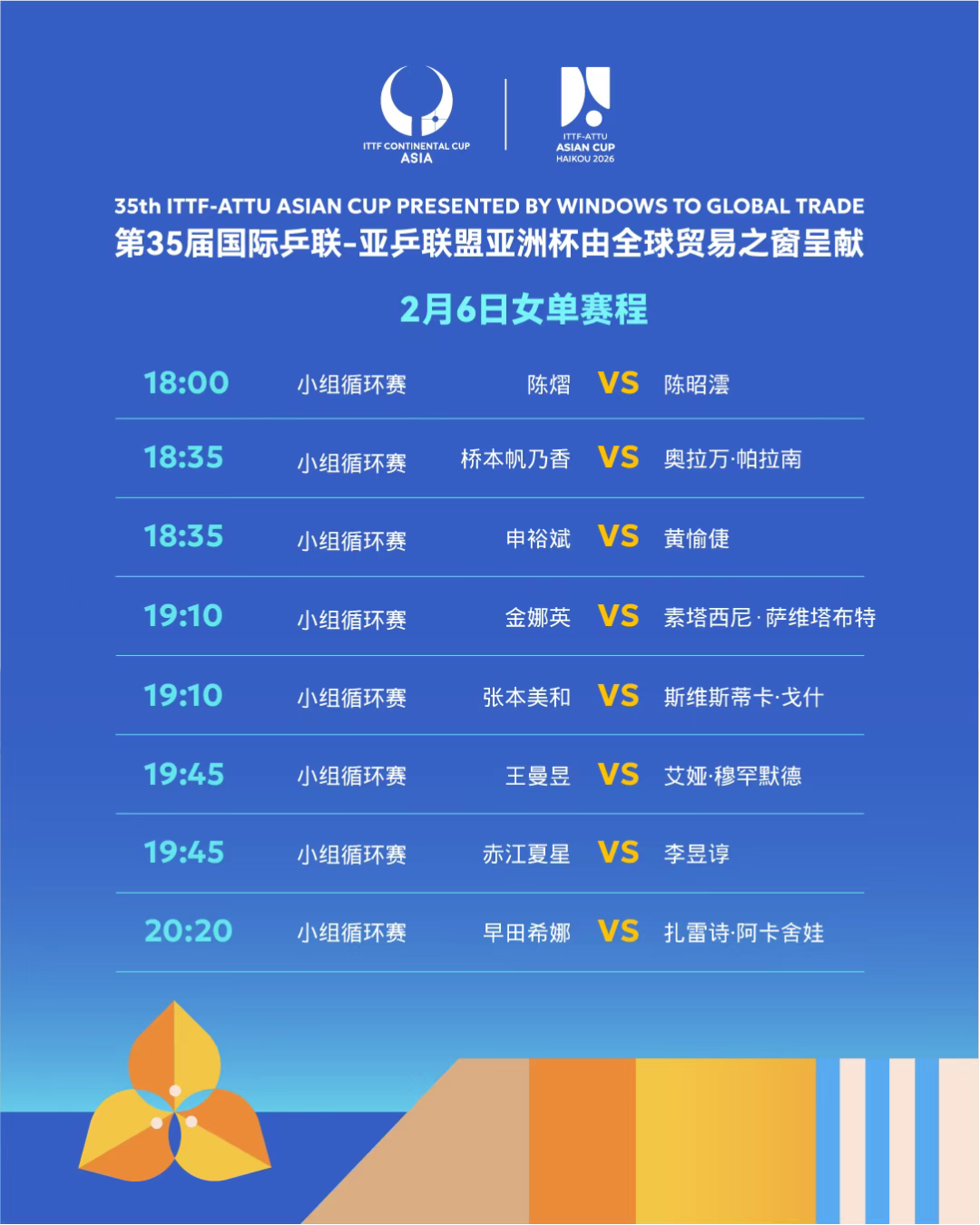 2月6日女单赛程