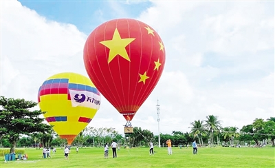 到海口万绿园乘坐热气球,俯瞰城市景色(海口市旅文局供图)