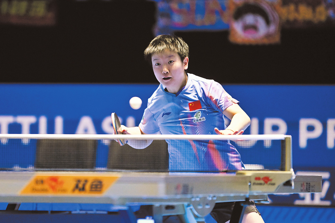 王楚钦在比赛中回球。本报记者 石中华 摄