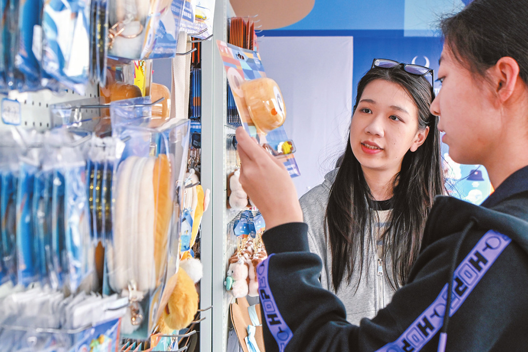 2月3日,市民游客在亚洲杯公园挑选文创。本报记者苏弼坤 实习生陈新锐 摄