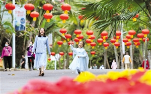 春节越来越近,年味也越来越浓,海口大街小巷处处张灯结彩。图为人民公园内大红灯笼高高挂,众多市民游客来此游玩。本报记者 苏弼坤 摄