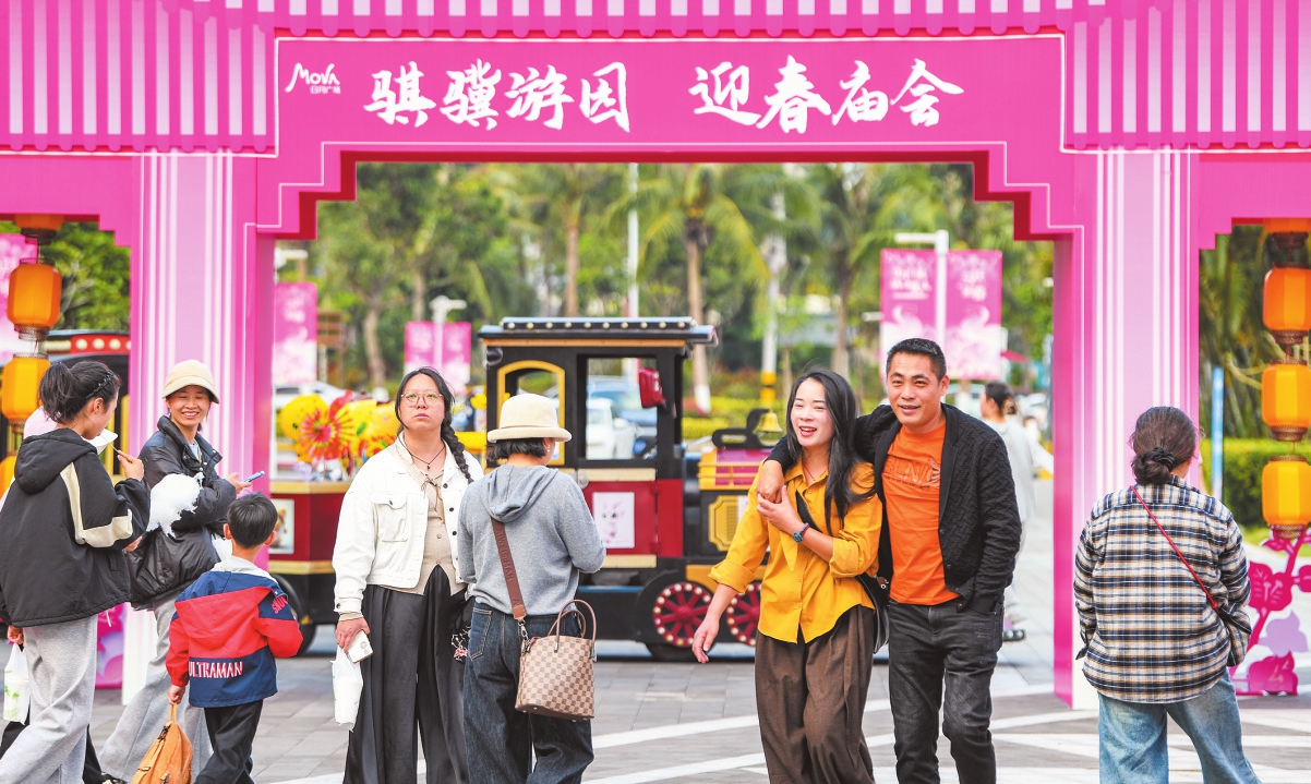 2月10日,海口日月广场的“骐骥游园”迎春庙会吸引了不少市民游客前来参观游玩。