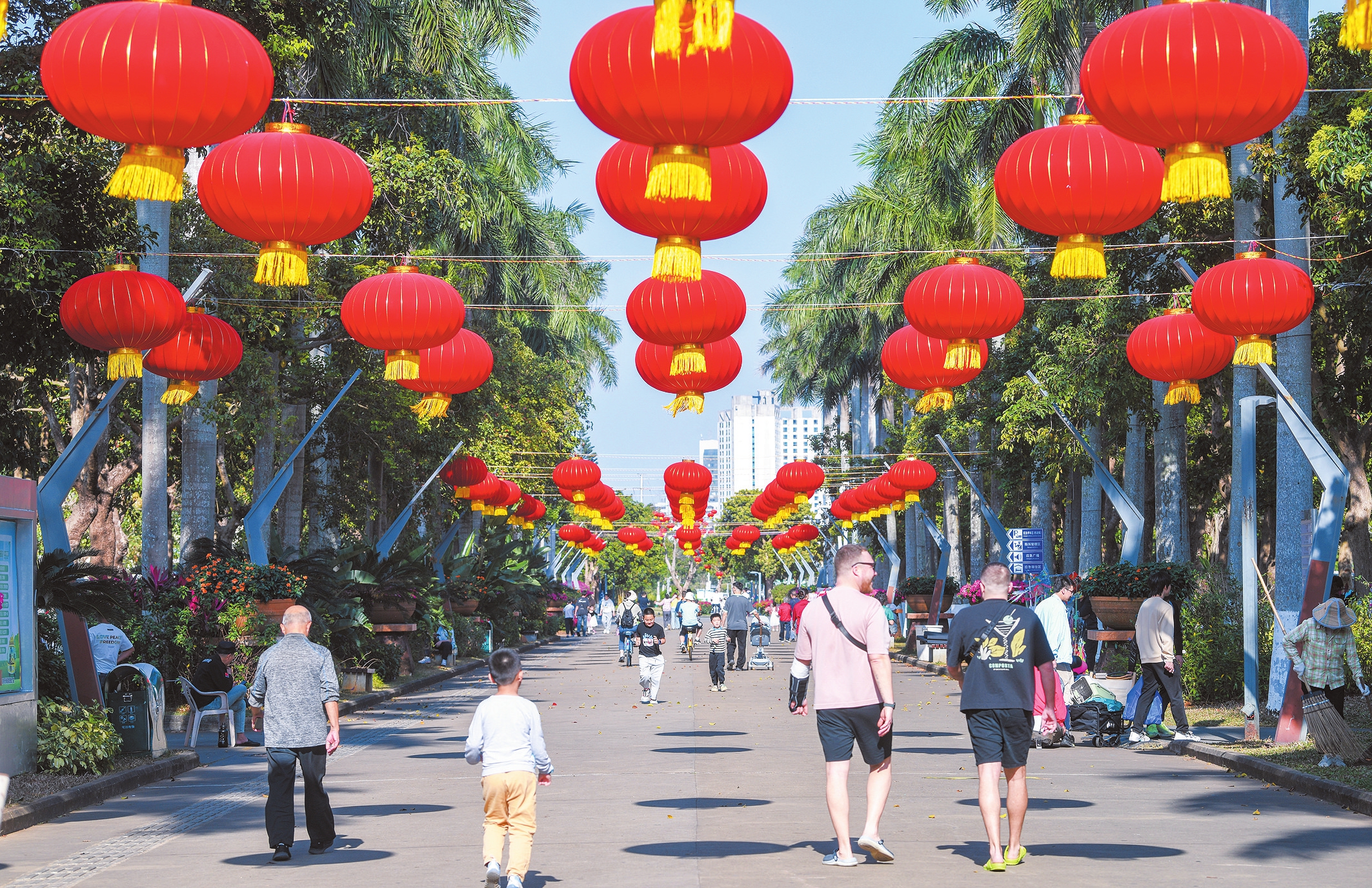 海口万绿园西门附近挂上了连片的大红灯笼,烘托出喜庆祥和的节日氛围。本报记者苏弼坤 实习生陈新锐 摄