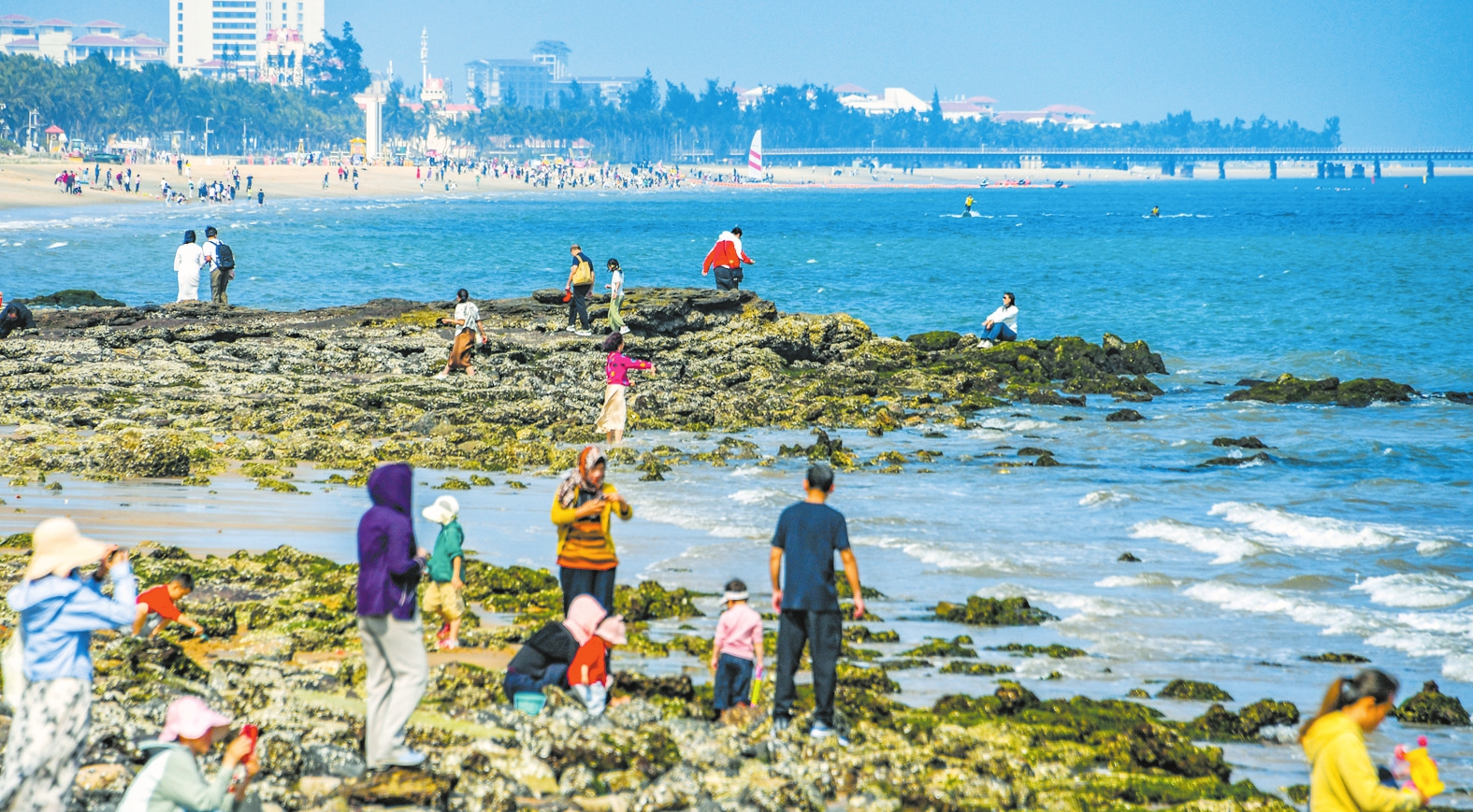 春节假期,不少市民游客在海口西海岸游玩嬉水,打卡拍照,乐享假日好时光。 本报记者 康登淋 摄