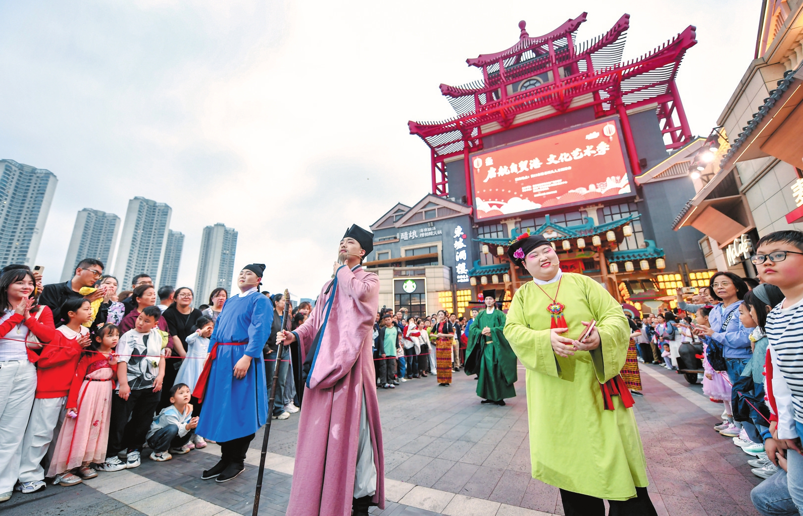 在海口万春会现场,情景演出吸引不少市民游客热情参与。本报记者苏弼坤 实习生陈新锐 摄