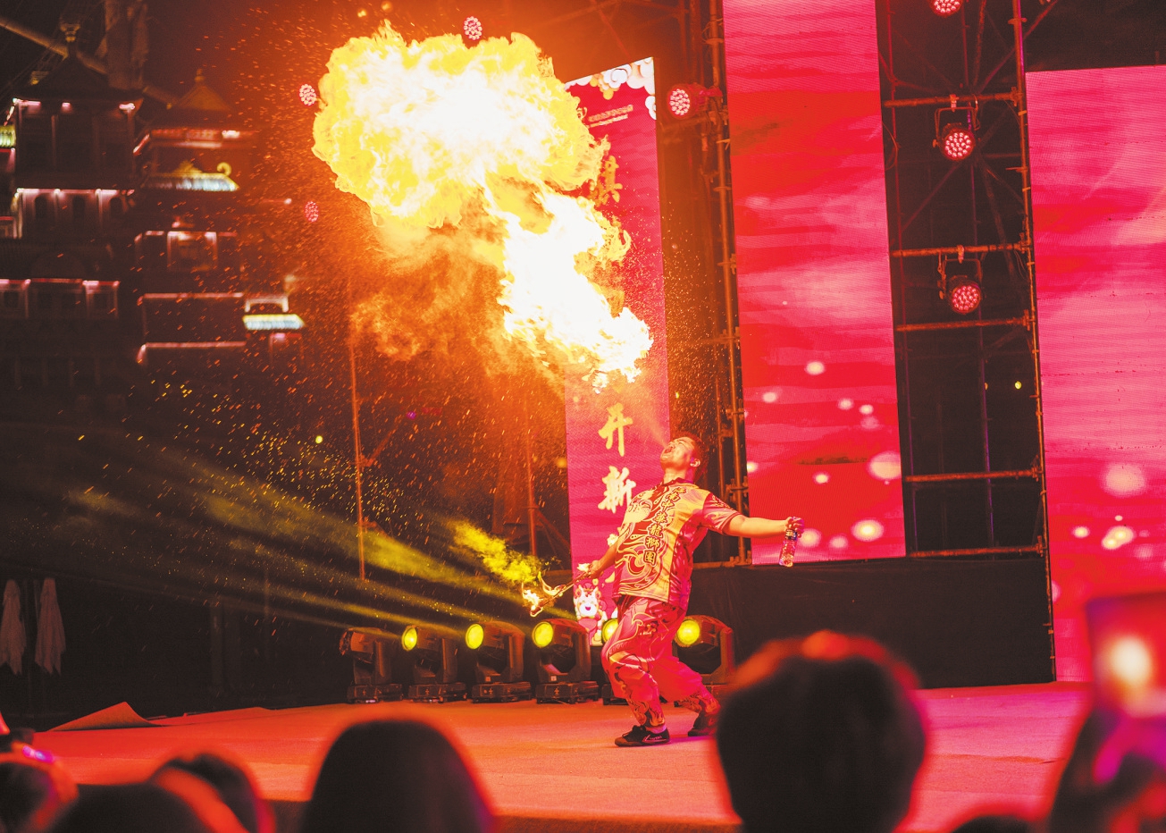 2月22日,海南长影奇幻乐园首届国潮非遗庙会上,精彩的节目表演轮番上演,吸引游客驻足观赏。本报记者 石中华 摄