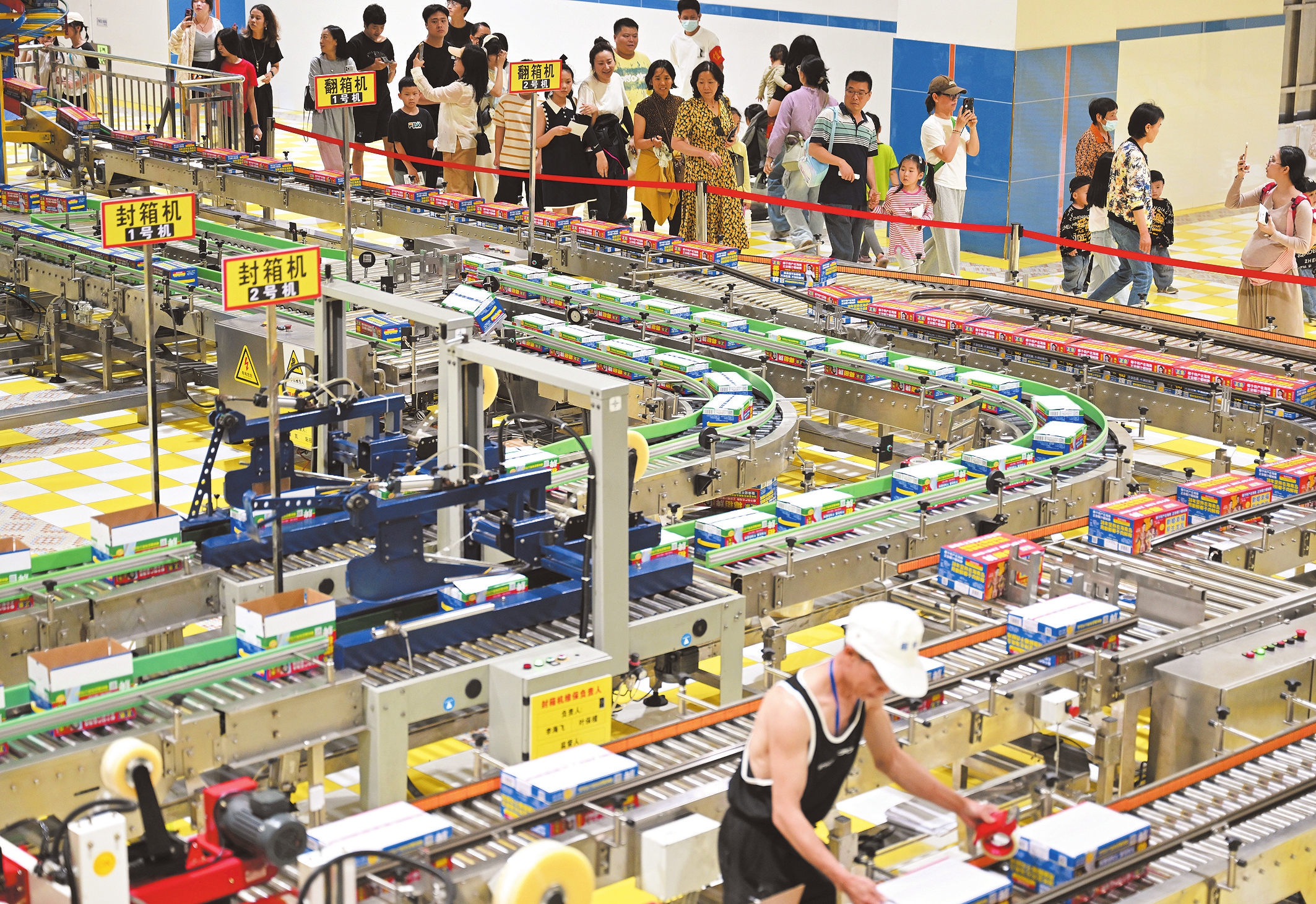 2月27日,市民、游客在椰树集团工厂参观。春节假期以来,海口工业体验游受到热捧,工厂变身网红打卡点,成为市民游客休闲游玩新选择。新华社记者 郭程 摄