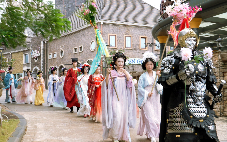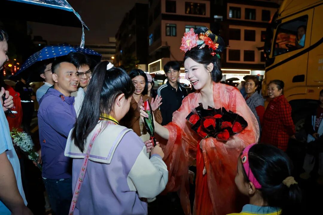 全城换花环节将节日气氛推向高潮。大街小巷,无数身着国风服饰的市民游客手持鲜花,互赠祝福。
