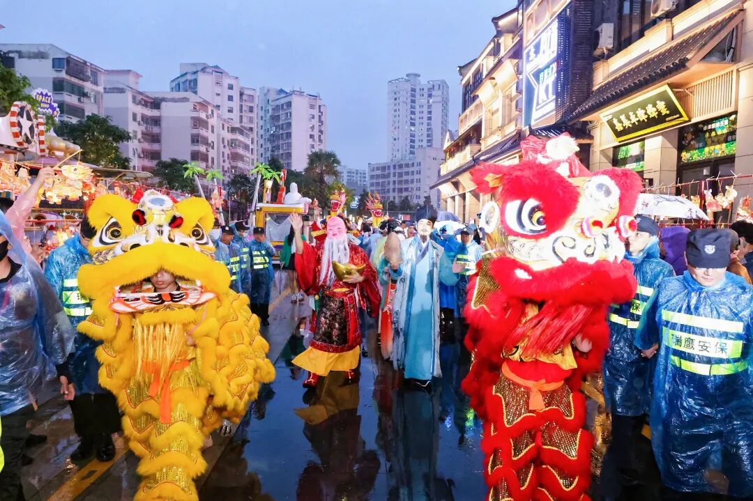 由群众扮演的“丘濬”“海瑞”等历史人物“乘”着花车沿主要街道逶迤前行,所到之处,里三层外三层的市民游客纷纷举起手机,争相记录这一古老民俗。