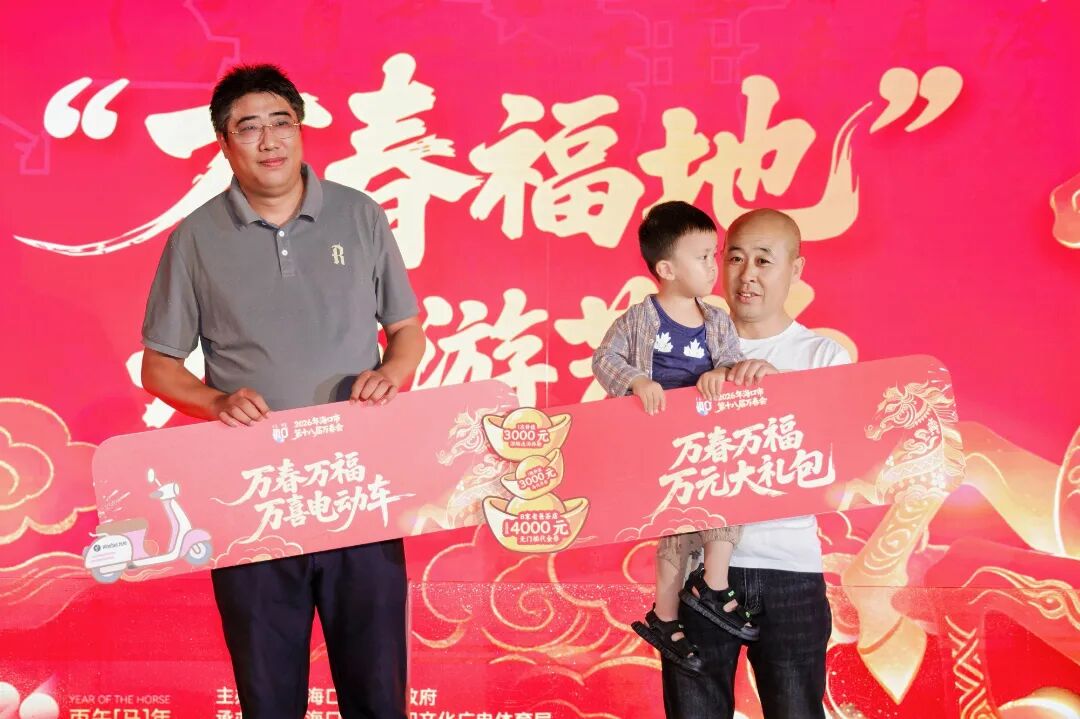 巡游虽已落幕,现场热情不减。在随后的“聚宝盆”新春大套圈颁奖环节中,“万春万福万元大礼包”“万春万福万喜九号电动车”两大奖项得主受邀登台,与市民游客共同分享这份幸运与喜悦,将万春会的好运与欢愉传递给每一个人。