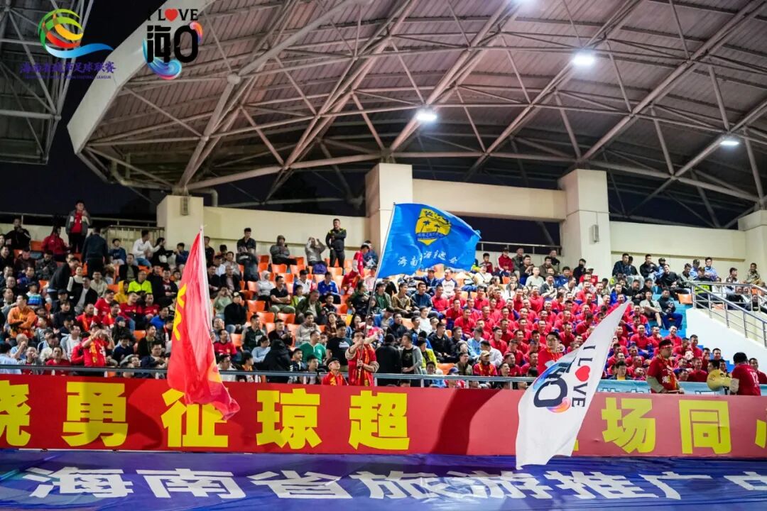 本场比赛作为海南省南北两座城市的直接“对话”,吸引了众多球迷到场观战。傍晚的海口微风习习,但赛场内的气氛却热烈如火。身着红色队服的海口队与身着蓝色队服的三亚队尚未登场,看台上双方的助威声便已此起彼伏。