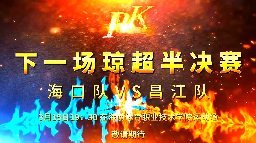 3月15日(本周日)19:30,海口队坐镇主场——海南体育职业技术学院运动场,迎战南区劲旅昌江队。两队强强对话,争夺最终决赛入场券,精彩一触即发!