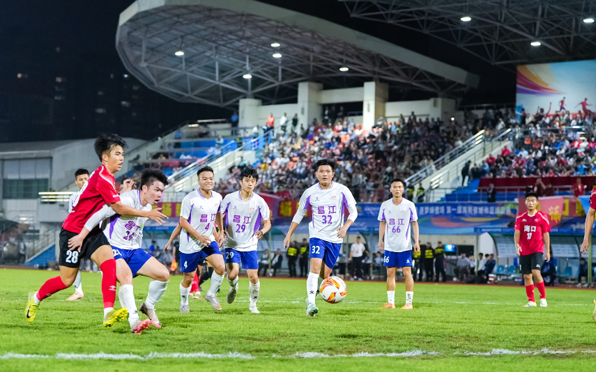 当落日的余晖渐渐隐没在椰林深处,海南体育职业技术学院运动场的灯光却将这片绿茵映照得如同白昼。3月15日晚,这里上演了一场足以载入海南足球史册的巅峰对决。“启航自贸港”第一届海南省城市足球联赛半决赛压轴之战,海口队与昌江队展开了一场意志与技术的极致博弈。在常规比赛时间里,双方以1:1握手言和,将比赛拖入残酷的点球大战。