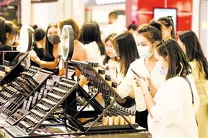 今年国庆假日期间,众多游客到海口日月广场免税店选购商品。 本报记者 王程龙 摄