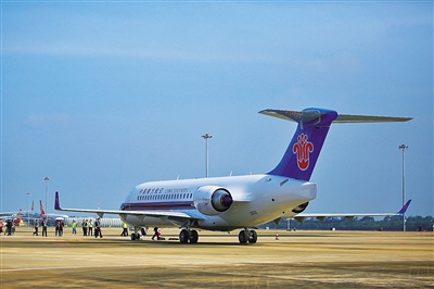 停放在海口美兰国际机场的南航第二架国产ARJ21飞机。南方航空供图