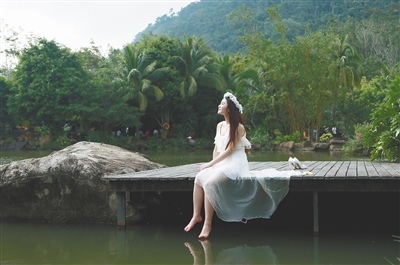 在呀诺达热带雨林,游客享受饱含负氧离子的新鲜空气。本报记者 武威 摄