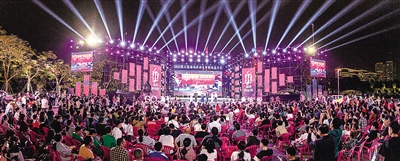 11月13日晚8点,2020第二届海南旅游美食购物嘉年华主会场促销活动在海口日月广场火热开启。活动现场火热欢腾,广大商家与来自全国各地的旅客及本地消费者热情高涨,欢乐购物。
