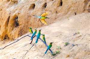 ◀海口五源河下游蜂虎保护小区良好的生态环境,吸引了“最美小鸟”栗喉蜂虎在此栖息。 本报记者 石中华 摄