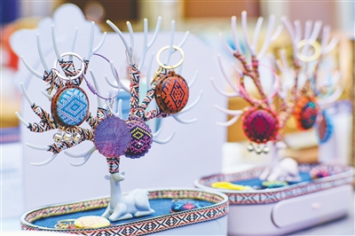 图②为黎锦拜扣吉祥钥匙挂件作品(获得全国银奖)。